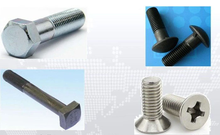Boulons en fonction de la forme de la tête: tête hexagonale, tête ronde, tête carrée, tête contre-mille et ainsi de suite.