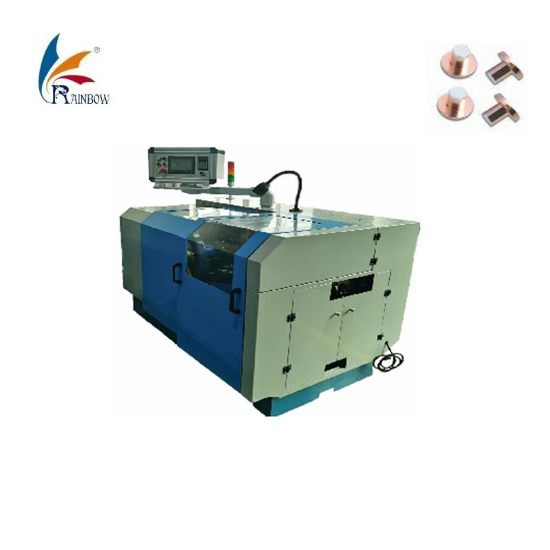 Bi-metallo composito contatto freddo intestazione può fare sei diversi metalli essere aggravati insieme sotto stato freddo per produrre contatti compositi a seconda delle esigenze di tecnica. Il processo di lavorazione comprende le seguenti fasi: invio di due differenti tipi di filo metallico nella macchina primo luogo, la loro trasmissione nello stampo dopo l'interruzione. Poi da due volte processo ricalcatura, i due tipi di metallo diventano i contatti compositi. Infine, i prodotti si ritirano dallo stampo ed entrano nella scatola del prodotto finito.