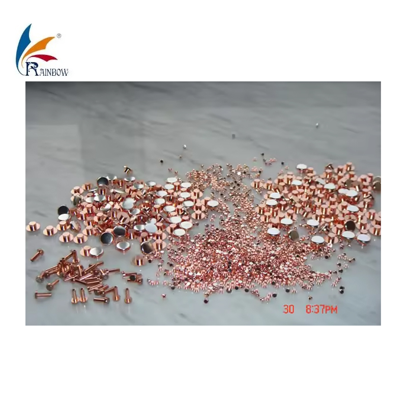 The machine can produce cold heading solid and bi-metal rivet contacts:Typical alloys include: